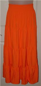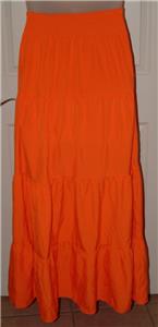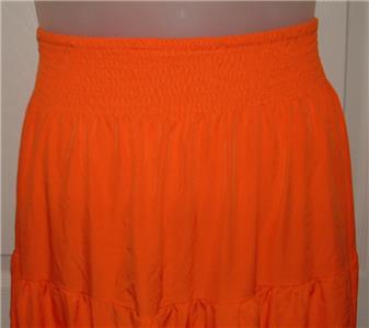 This skirt is size large and is very gently worn, in like new condition, no rips or stains, might have some wrinkling with shipping. It is made with cotton and polyester and machine washable. The smocked elastic waist measures 12 1/2" across unstretched, the hips measure 22" across and is 42 1/2" in length. Very cute skirt.