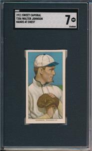 Walter Johnson 1909 1910 T206 Hands at Chest Sweet Caporal Back SGC 7 !