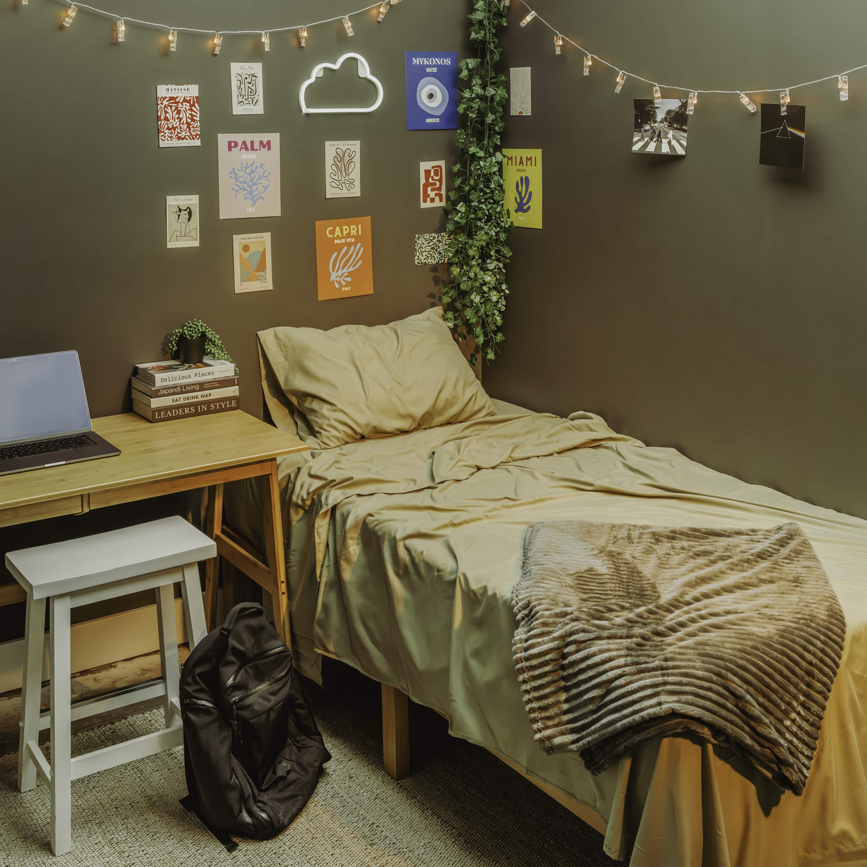 Each Virtu Bath and Bed in a Bag set is designed to provide college dorm room essentials, ensuring comfort, storage, and style. The sets include high-quality, ultra-soft microfiber bedding with coordinated accessories for a complete dorm experience. Key features include extra-thick comforters, plush blankets, cushioned mattress pads, and smart storage solutions like storage benches.