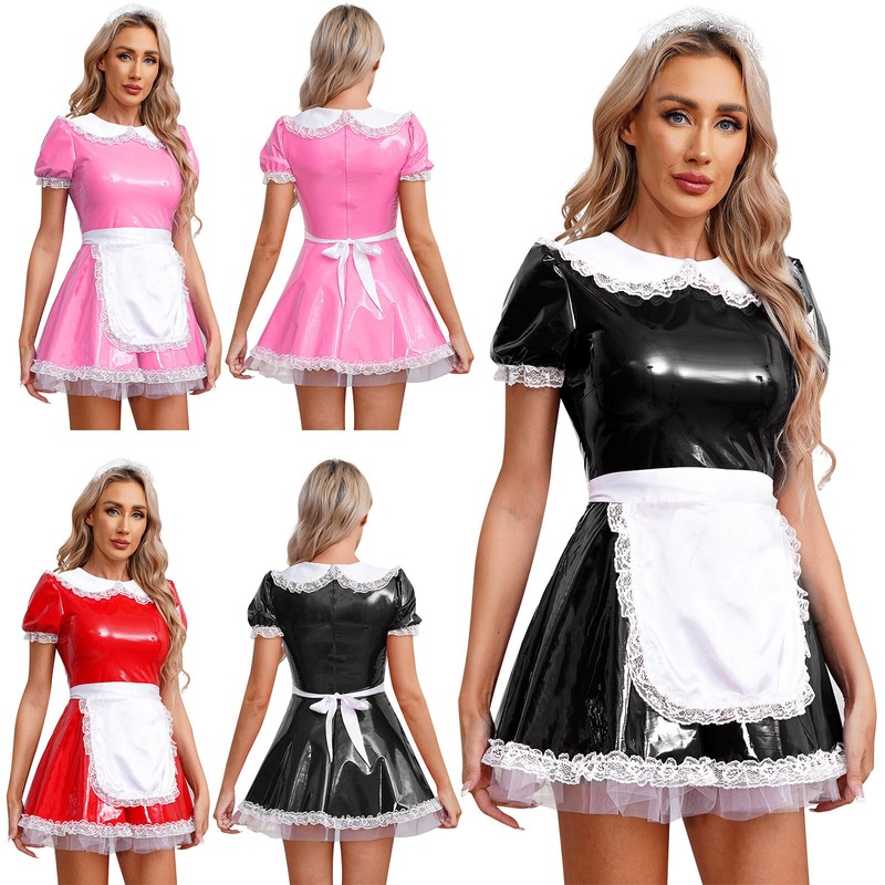 Package includes a lab coat and a pair of rubber gloves. Lab coat is designed with stand collar, long sleeve, side button-up and flared hem.