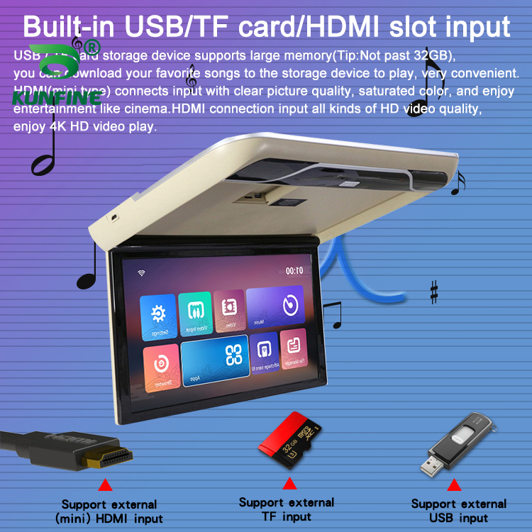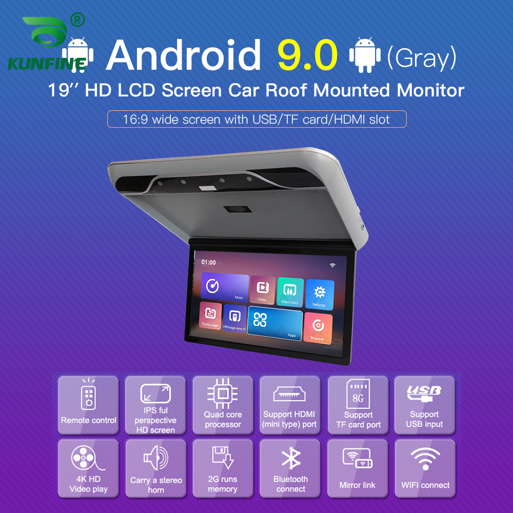 Android 9.0 Touch Screen HD 1080p LCD TFT HDMI 19 inch ultra-thin clamshell widescreen Display digital screen Car Roof Monitor Flip Down Screen Overhead Multimedia Video Ceiling Roof mount infrared transmitter USB/SD player