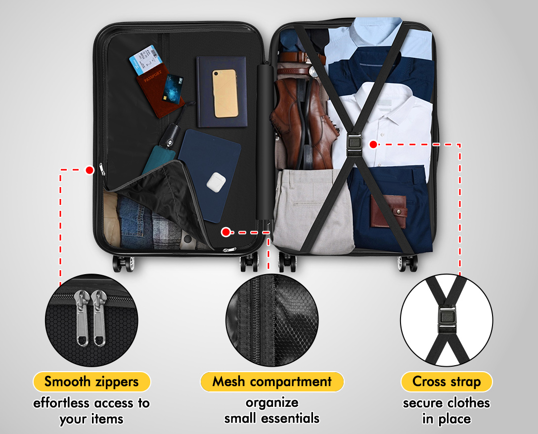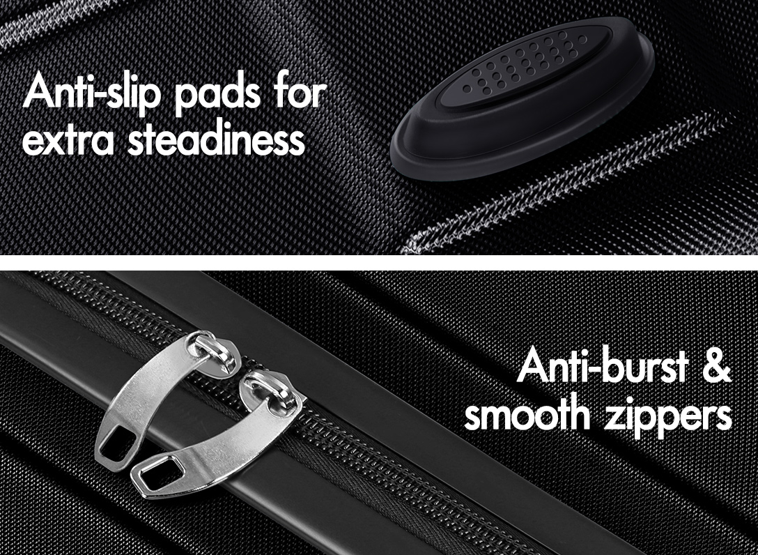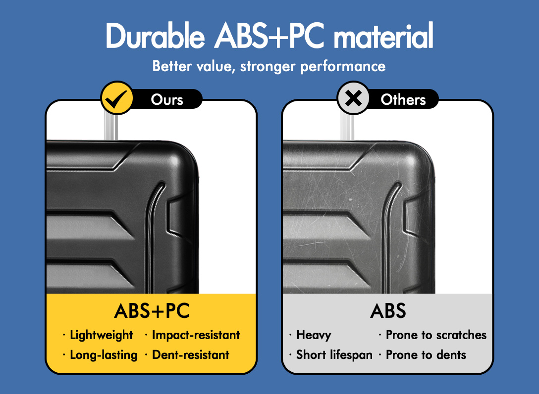 Crafted from robust ABS and PC materials, the suitcases strike the perfect balance between durability and lightweight design. It not only strengthens the suitcase shell’s resilience against breaks and color fading but also ensures that your luggage stays looking vibrant trip after trip.