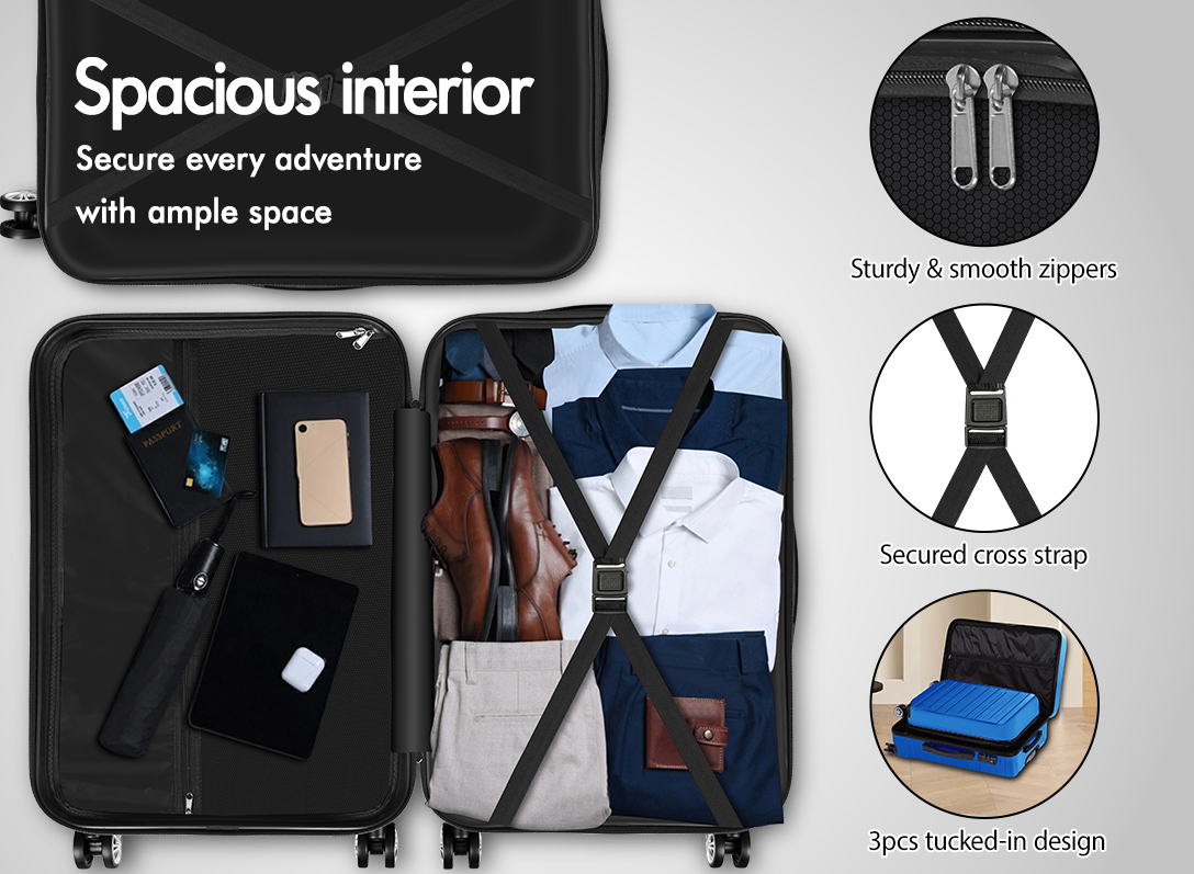 With spacious storage options, including zipped compartments and an X-strap design for superior stability, you can pack with confidence. Plus, the luggage set comes in an array of colours, patterns, and sizes, allowing you to express your unique style whether you favour classic elegance or bold statements.