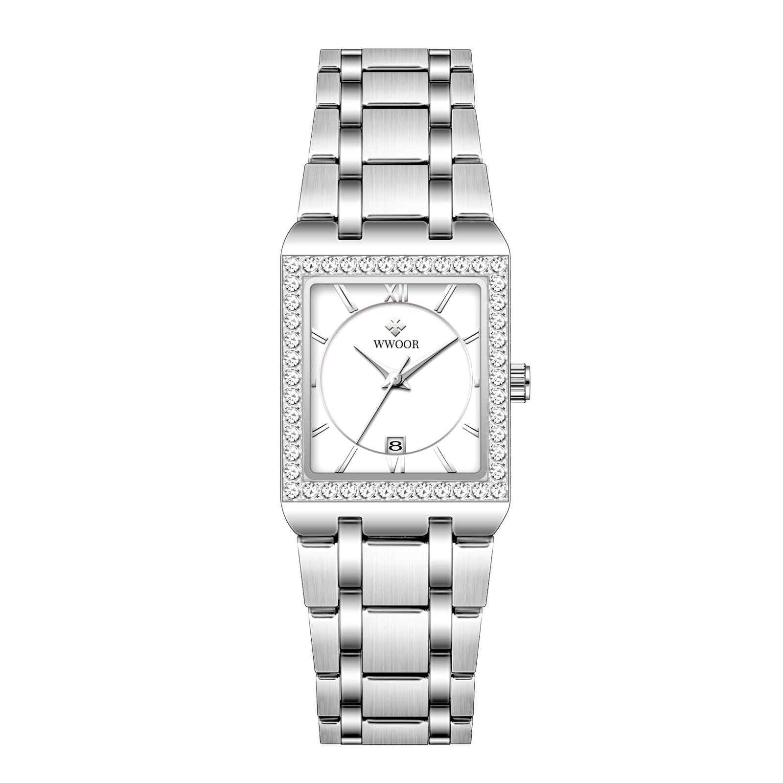 WWOOR Womens Watches for Small Wrists Stainless Steel Luxury Square Danity Silver Watches for Women with Date Waterproof Ladies Watches Elegant Dress Quartz Women's Wrist Watches Reloj de Mujer
