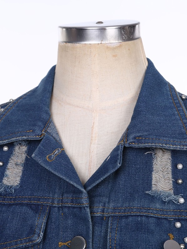 Women’s denim vest makes you look stylish and charming with plastic beads and ripped details.