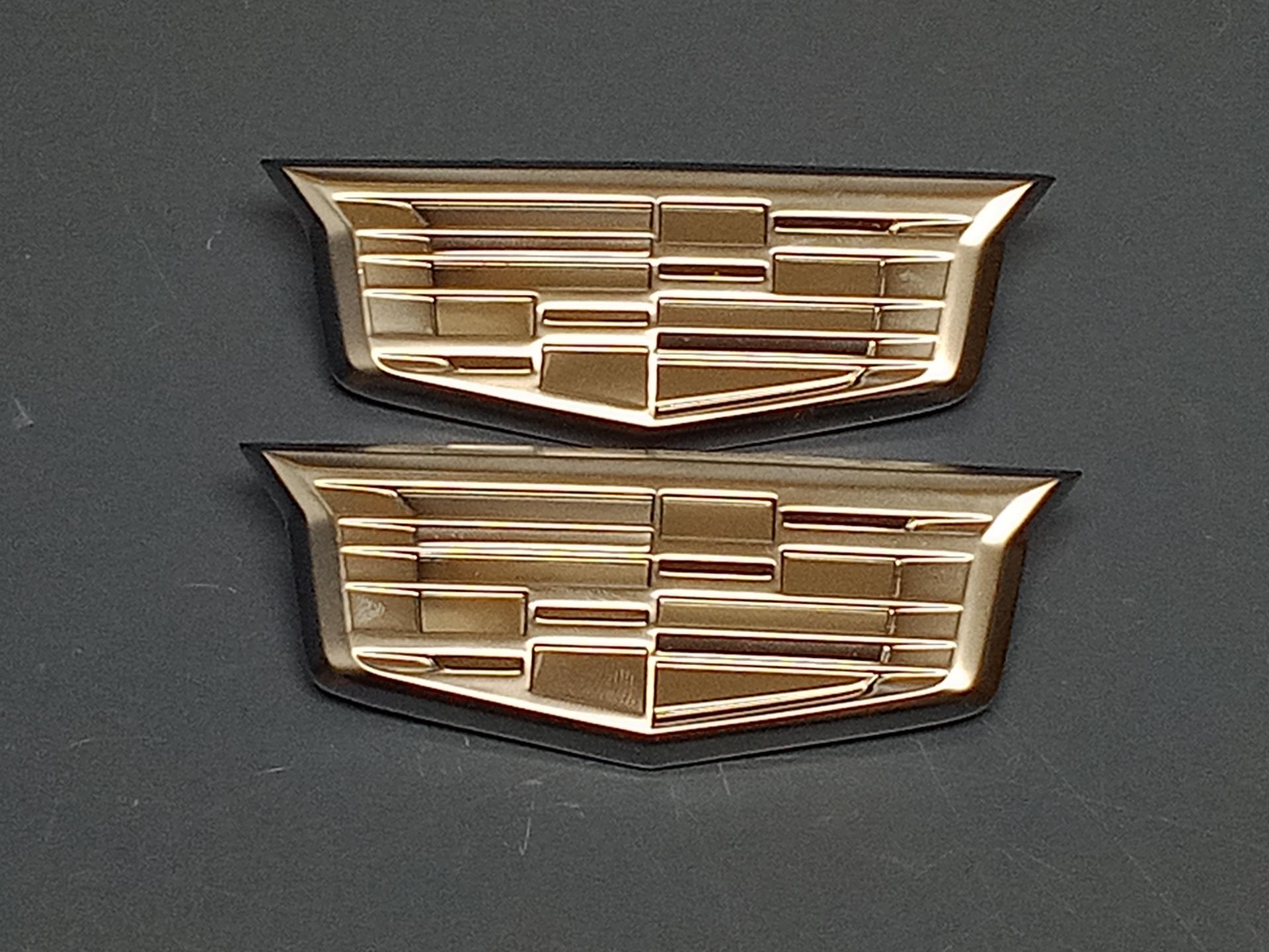 Lot of 2 Cadillac Fender Door Floormat Emblem Shield Logo Badge Satin Nickel