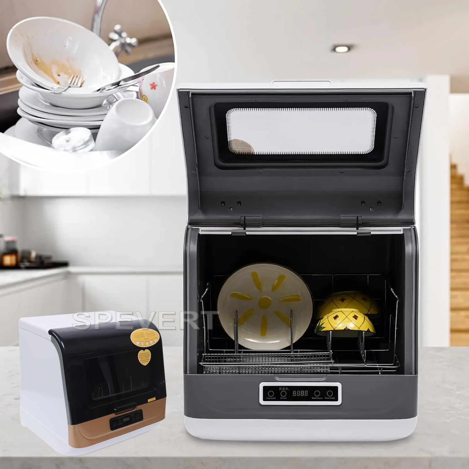 Transparent Design: The middle of the lid adopts a transparent design, which allows you to see the working status and progress of the dishwasher at a glance.