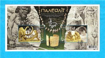 The stamps of the postal block depict scenes from the Upper and Middle Paleolithic period.