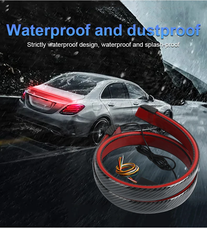 3. Clean the sticking surface of the trunk cover, stick the light strip on the trunk, and press firmly for 10 seconds to fix it. (No contact with water recently)