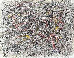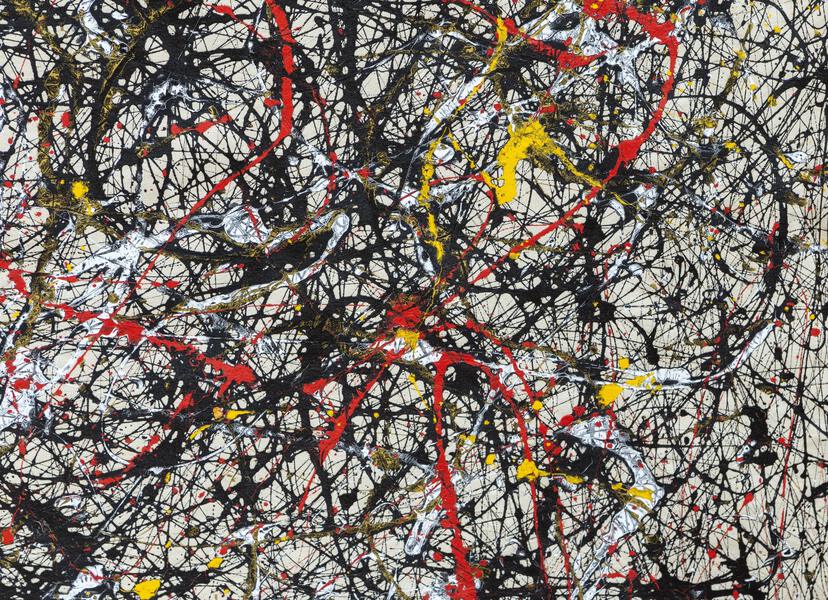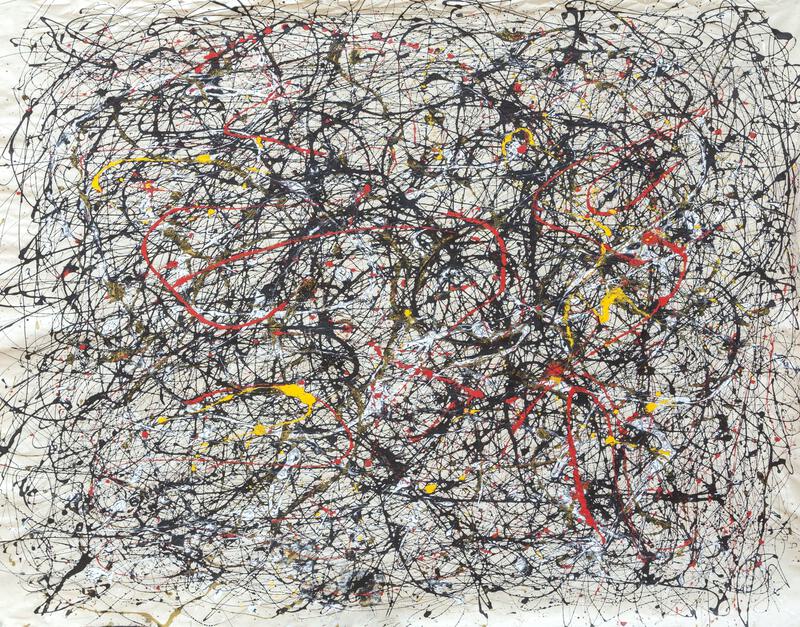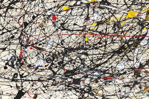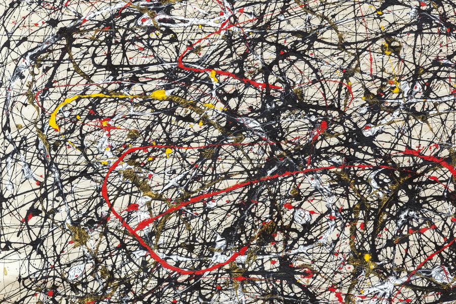 A large, dramatic Jackson Pollock-style abstract acrylic and enamel painting on canvas by Contemporary artist Bill Hewes.