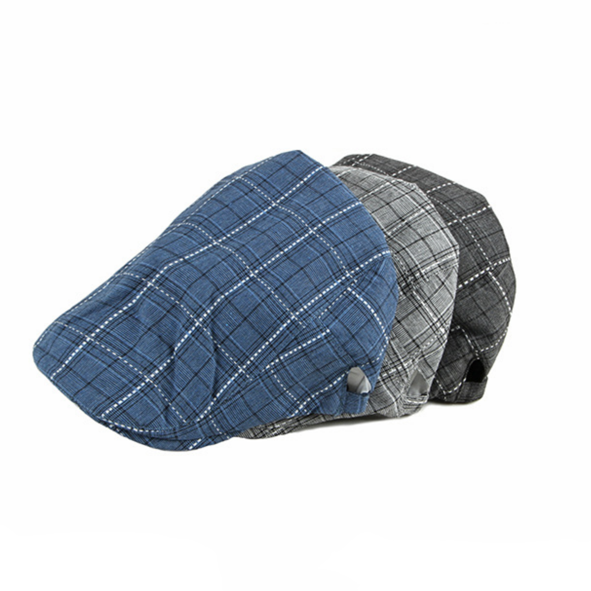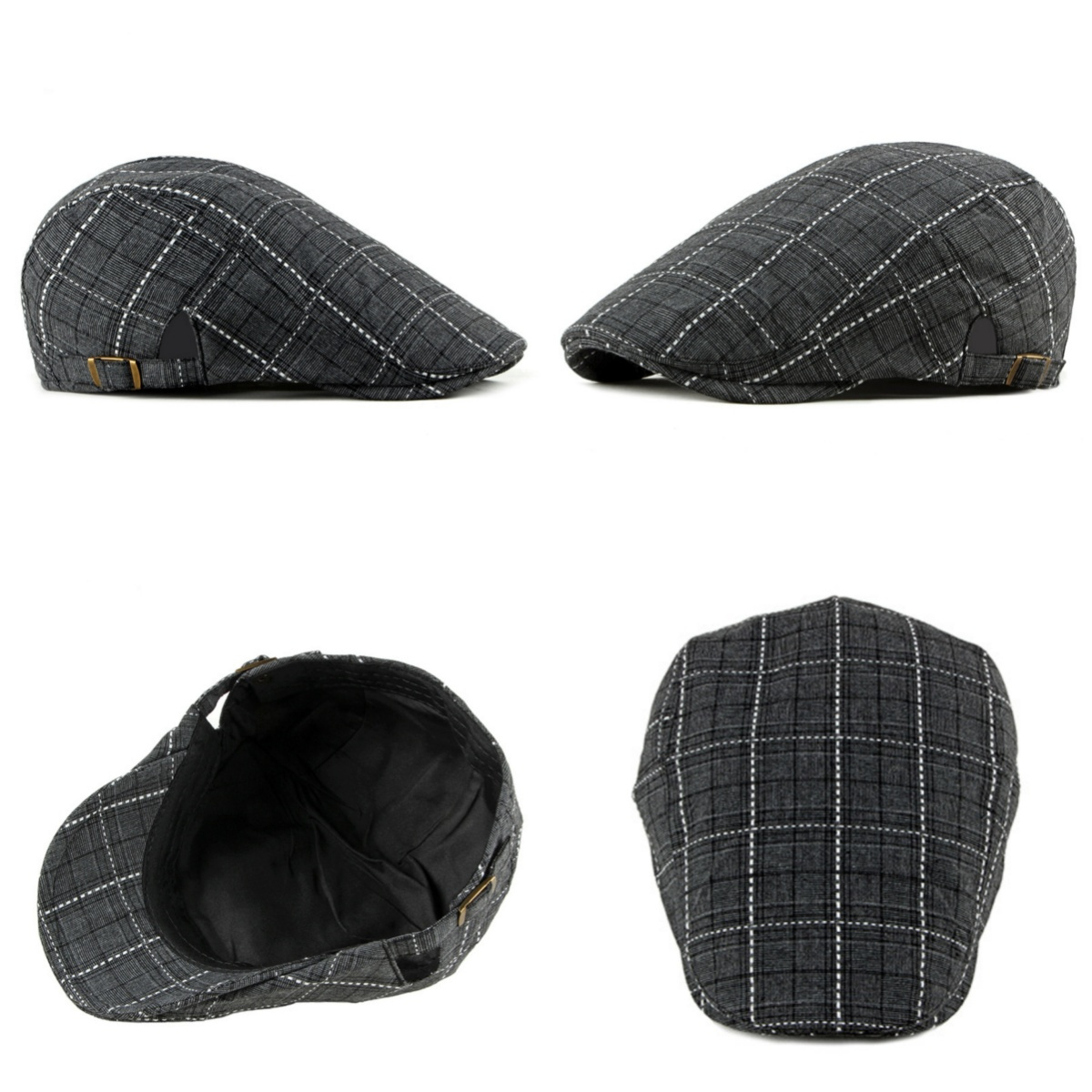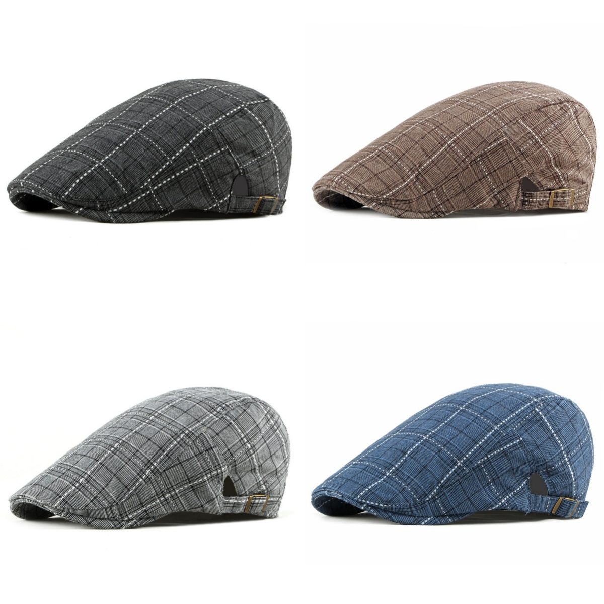 Men's Plaid Cotton Gatsby Cap Golf Driving Cabbie Beret Newsboy Ivy Hat Fashion