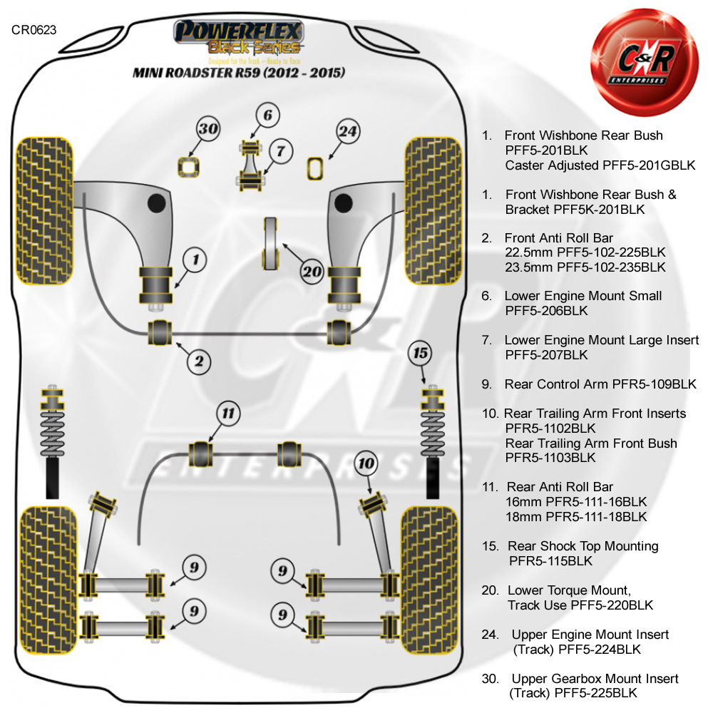Powerflex schwarze vordere Querlenker-Hinterbuchsen für Mini R59 Roadster (2012–2015) PFF5-201BLK