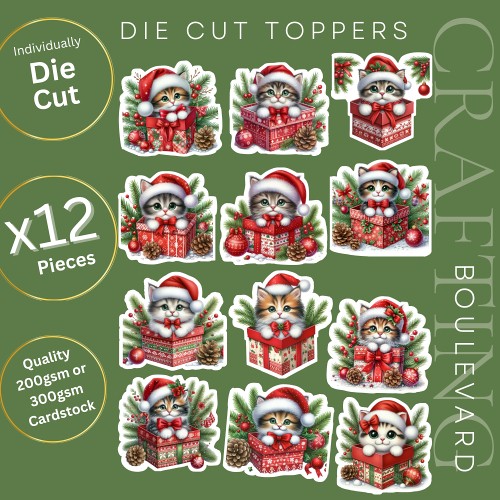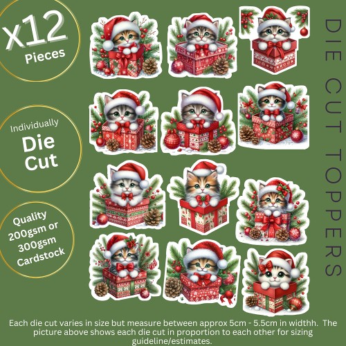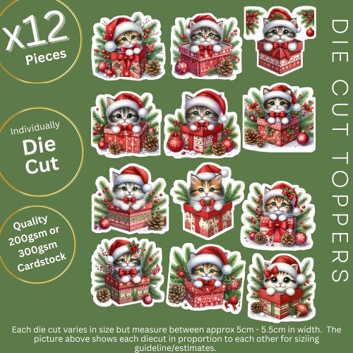 - x12 Die Cut Toppers printed on 200gms or 300gsm cardstock & individually die cut as per pictures. Sizes vary as per pictures but will generally measure between 5cm-5.5cm in width or