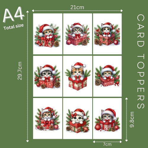 - x9 Card Toppers printed on A4 200gsm or 300gsm cardstock & individually cut as per pictures. Each card topper measures 7cm (w) x 9.8cm