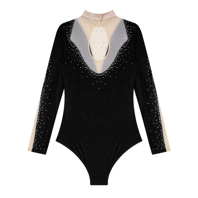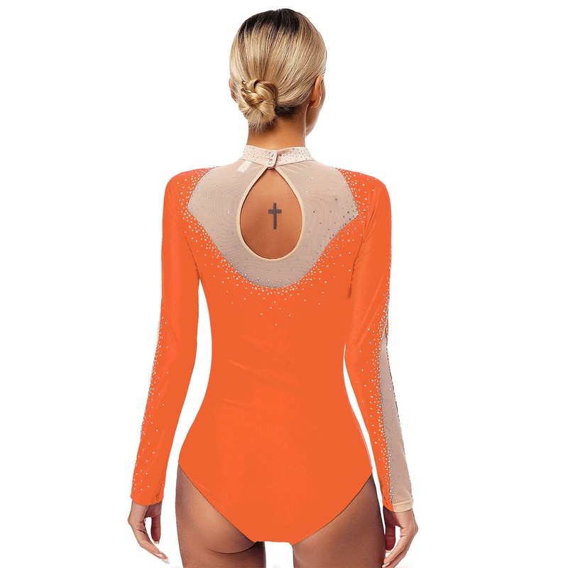 Women’s long sleeve dance leotard with shiny rhinestones brightens up any performance and makes you eye-catching in the crowd.