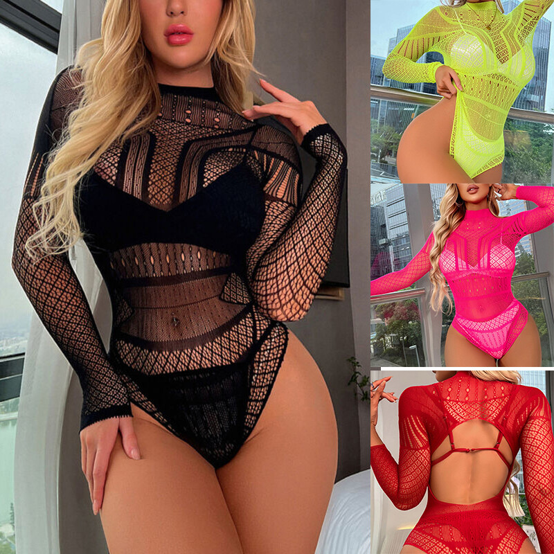 Women’s one-piece erotic hollow out netted bodystockings lingerie, one size fits most.