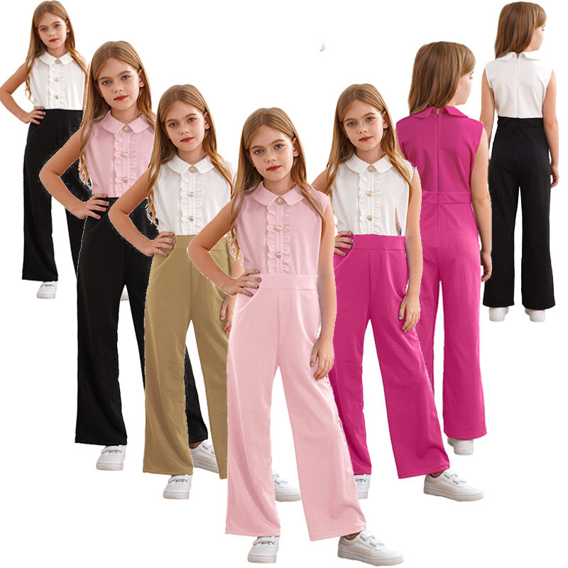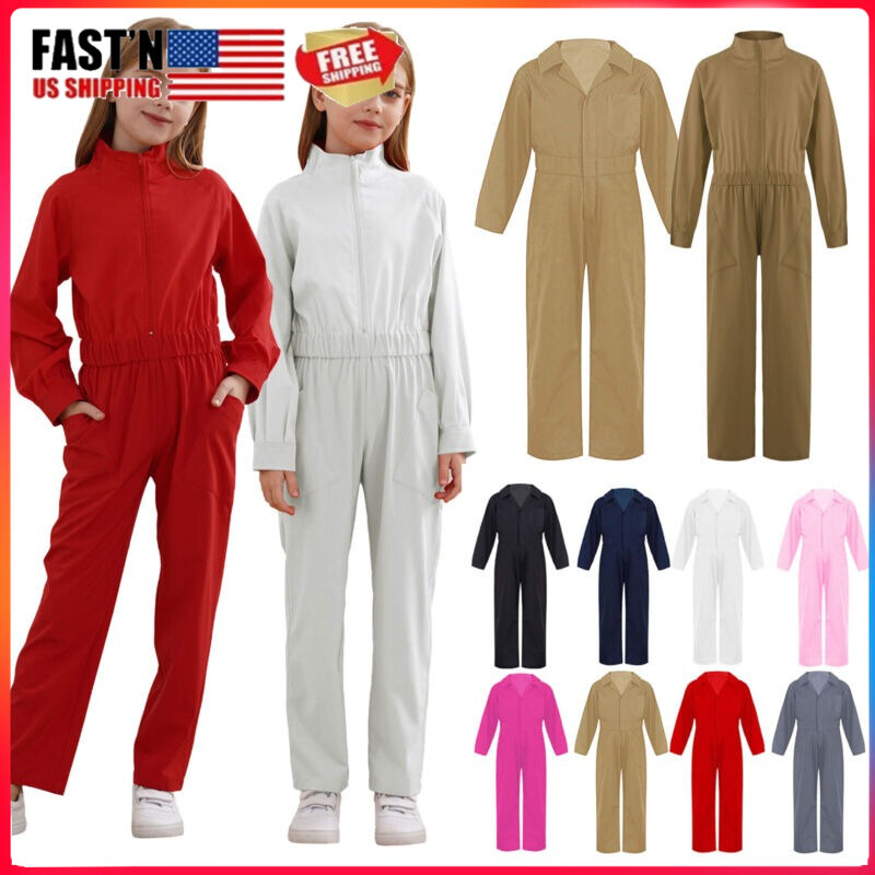 Girl’s stand collar long sleeve coverall with zipper closure in the front, easy to put on or take off.