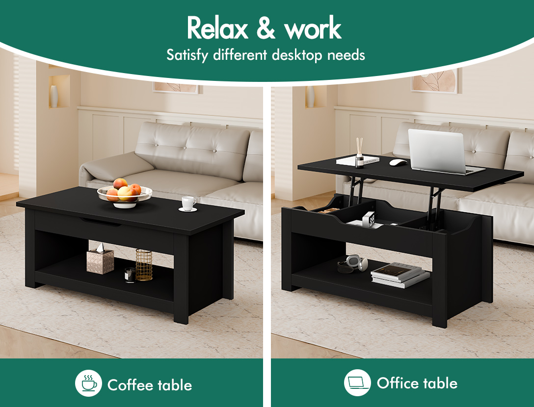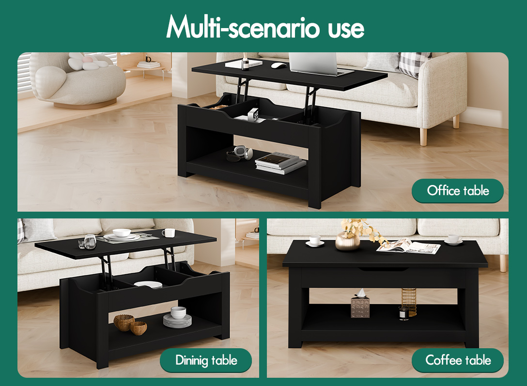 As a versaltile and space-saving piece of furniture, this coffee table is not only a centerpiece of living room but also can serve as dining table or a computer desk.