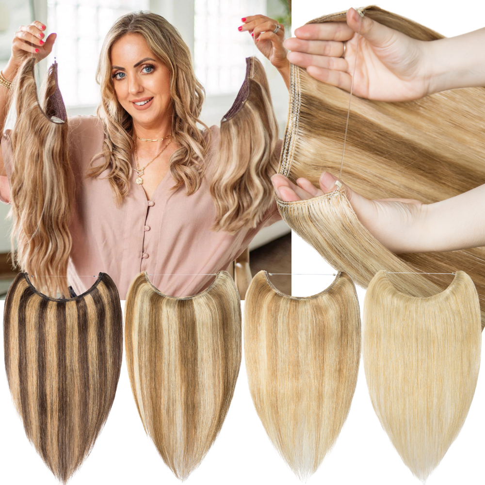 |   | Thick Hidden Wire In 100% Remy Human Hair Extensions One Piece Clip In BLONDE US BEGIN]--> | | Item Description | | | Item:Wire in Headband HUMAN HAIR EXTENSIONS Hair Material: 100% Real Remy Virgin Human Hair -❀8A Grade High Quality -❀Can be Curled/ Dyed/Washed Restyled as your own hair Hair Features -❀Silky,Straight,Soft,Smooth -❀No Shedding and No Tangle, Easy to Care, Last Longer -❀Silky,Straight,Soft,Smooth -❀No Shedding and No Tangle, Easy to Care, Last Longer Hair Length -❀ 16inch,18inch,20inch,22inch,24inch in available Hair Weight - 16inch~60 Gram