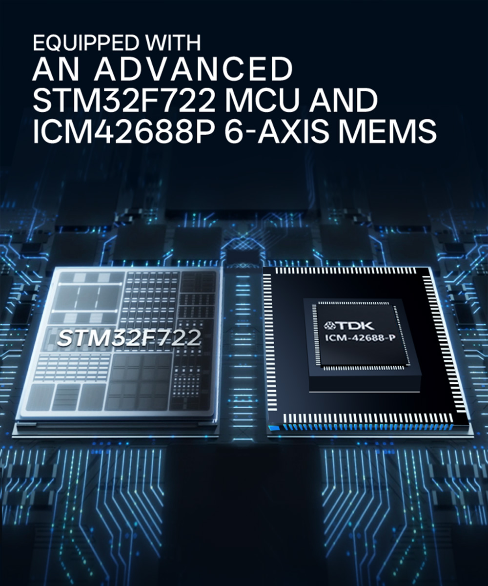 1. Equipped with an advanced STM32F722 MCU and TDK 6-axis MEMS motion tracking device, which combines a 3-axis gyroscope and a 3-axis accelerometer.