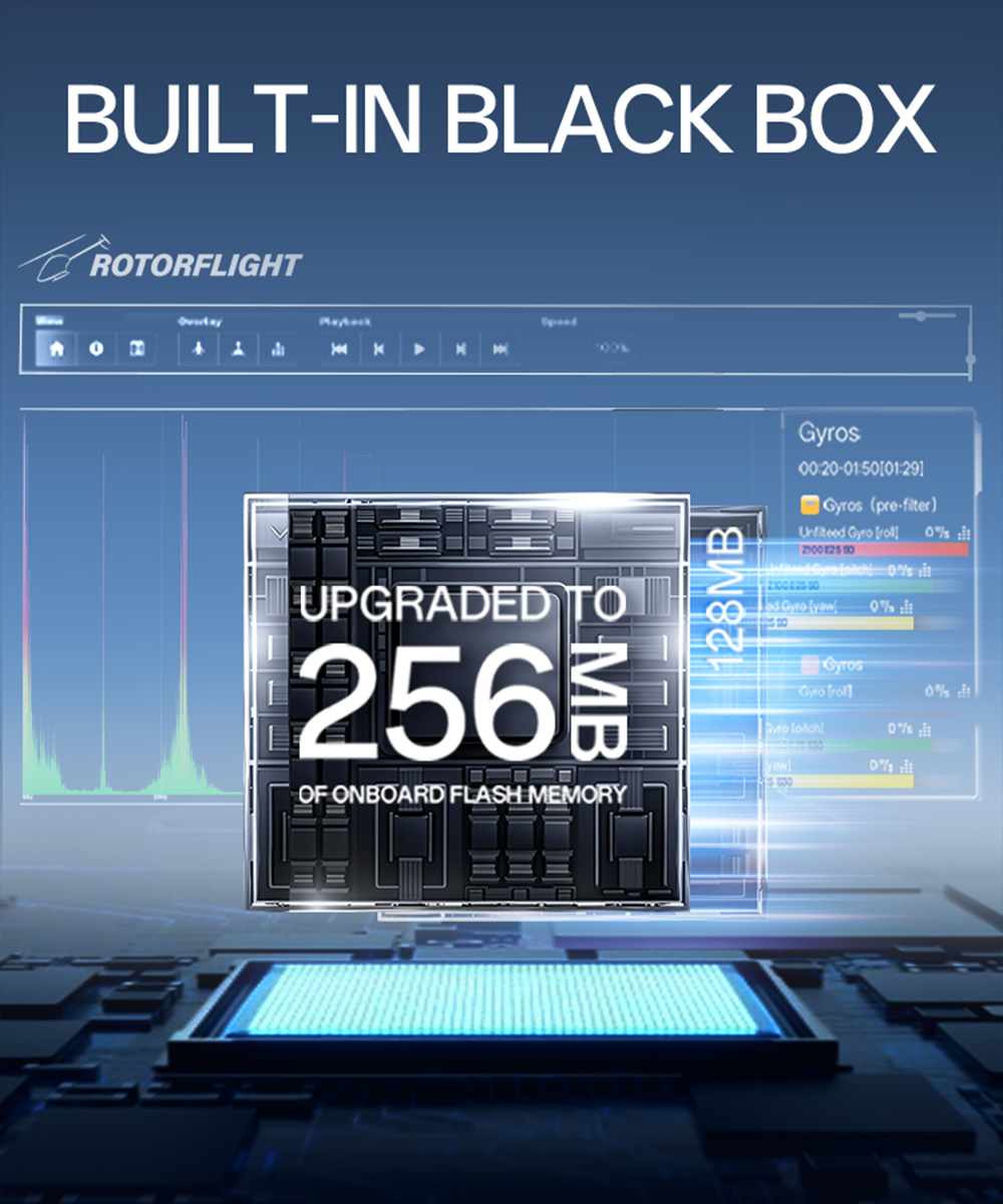 2. Built-in Black Box: A large 128Mb of onboard flash memory ensures you can log all your flights for fine-tuning and adjustment.