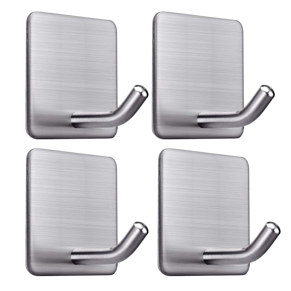 FOTYRIG Self Adhesive Wall Hooks Hanger Garage Storage Organizer Stick On Sticky Bathroom Kitchen for Umbrellas, Scarves,Towels, Robes, Bags, Coats, Keys -4 Packs