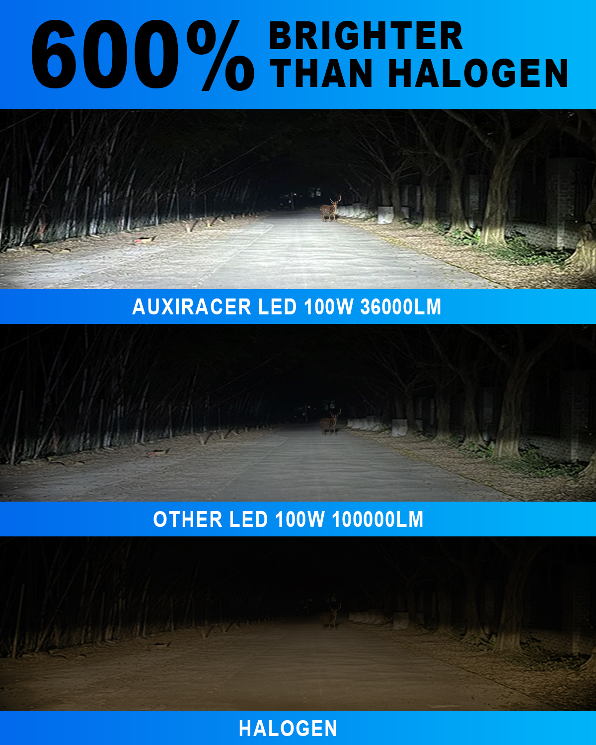 SUPER BRIGHT: 100W, 36000LM per pair with stronger, more concentrated light output, 600% brighter than the original halogen bulbs, allowing you to see more clearly when driving at night.