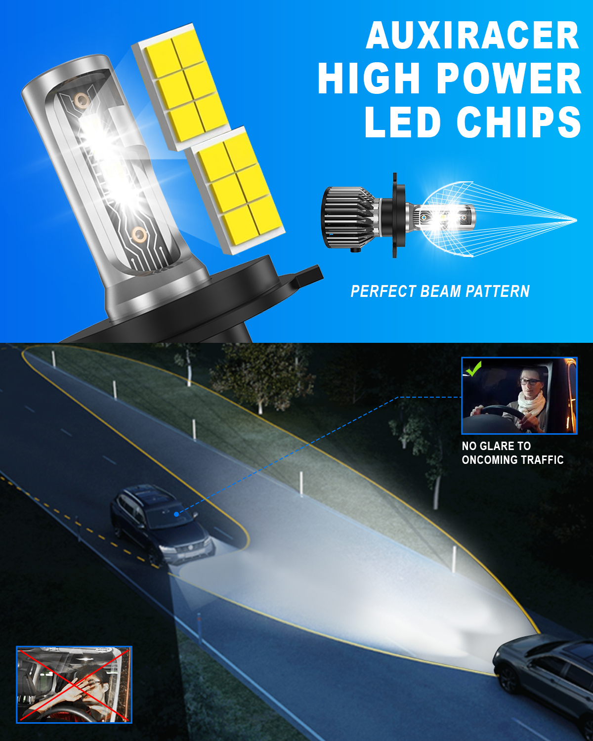OPTIMAL BEAM PATTERN: Our LEDs have the same beam pattern as the halogen bulbs with a clear cut off line, without any dark spots or shadow areas and no glare to oncoming traffic.