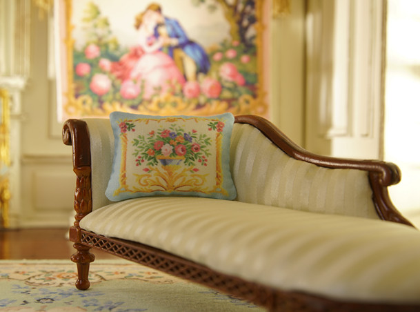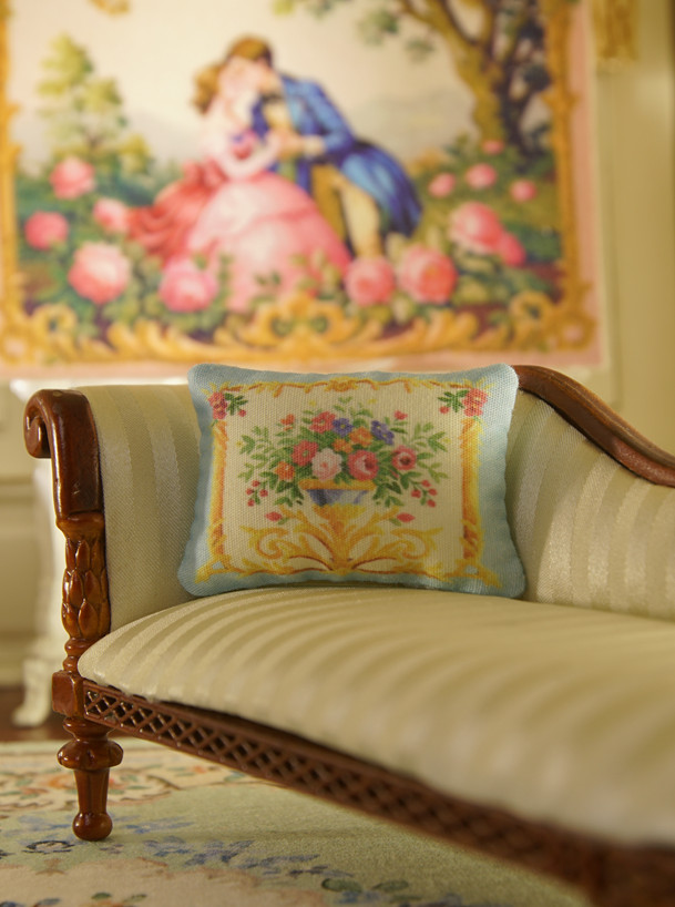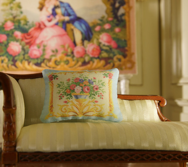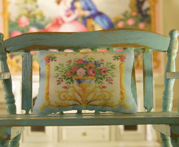 Garden Floral Medley Decorative Aubusson Design Dollhouse Miniature Pillow, 1:12 Scale