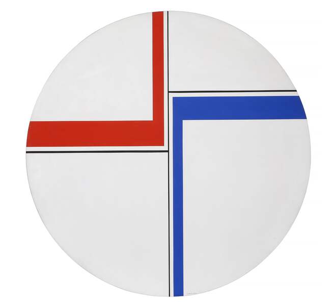 Ilya Bolotowsky, Russian/American (1907 - 1981) - Rising Tondo, Year: 1972Medium: Acrylic on Canvas, signed and dated bottom, and signed, titled, and dated on verso, Size: 47 x 47 in. (119.38 x 119.38 cm)