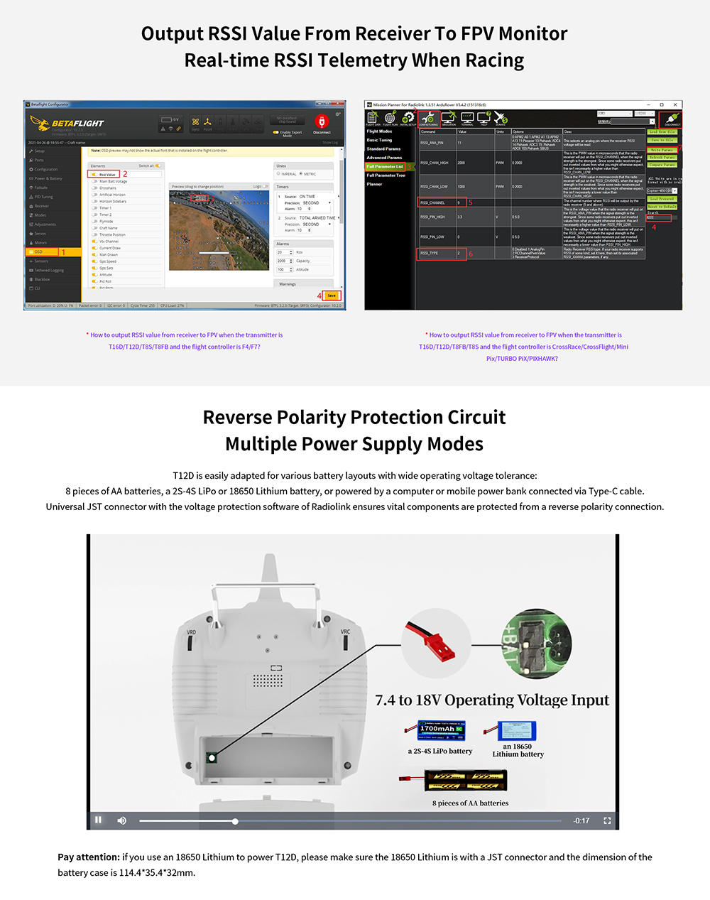 Telemetry: Real-time built-in telemetry of the model battery voltage, RSSI, and receiver voltage. R12F has built-in data