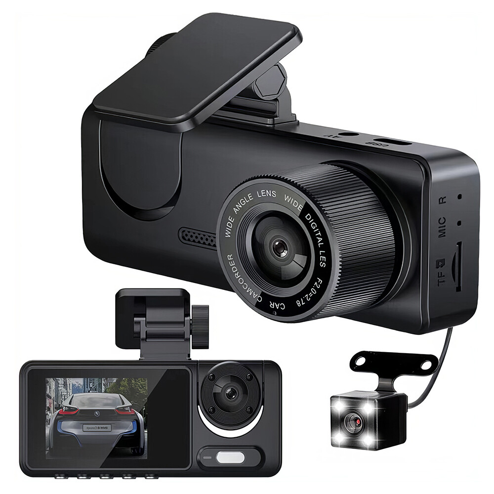 Specification: Material: ABS Image format: JPG Loop recording: support Display: 2.0 inch Memory card: TF card Loop: Automatic loop overwrite recording Type: 3 Camera /1080P(front) Pixel: 1920x1080 / 30 frames(front) Front Camera: 6-Glass/F2.0 aperture Battery: Built-in Polymer Lithium Battery Current Frequency: 50/60HZ Operation / Storage Temp: -40+70 degrees