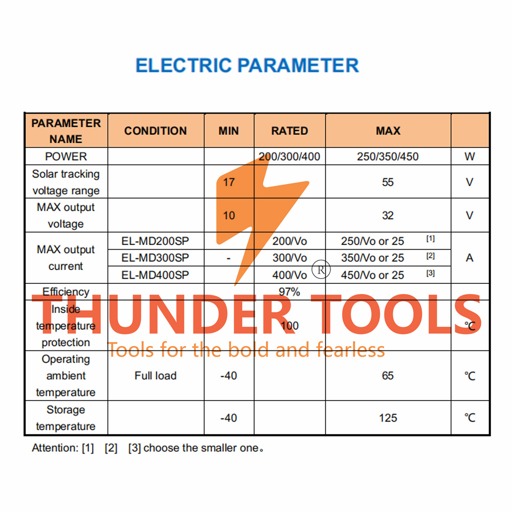 Thunder Tools 200W/300W/400W (Optional) Maximum Power Point Tracking