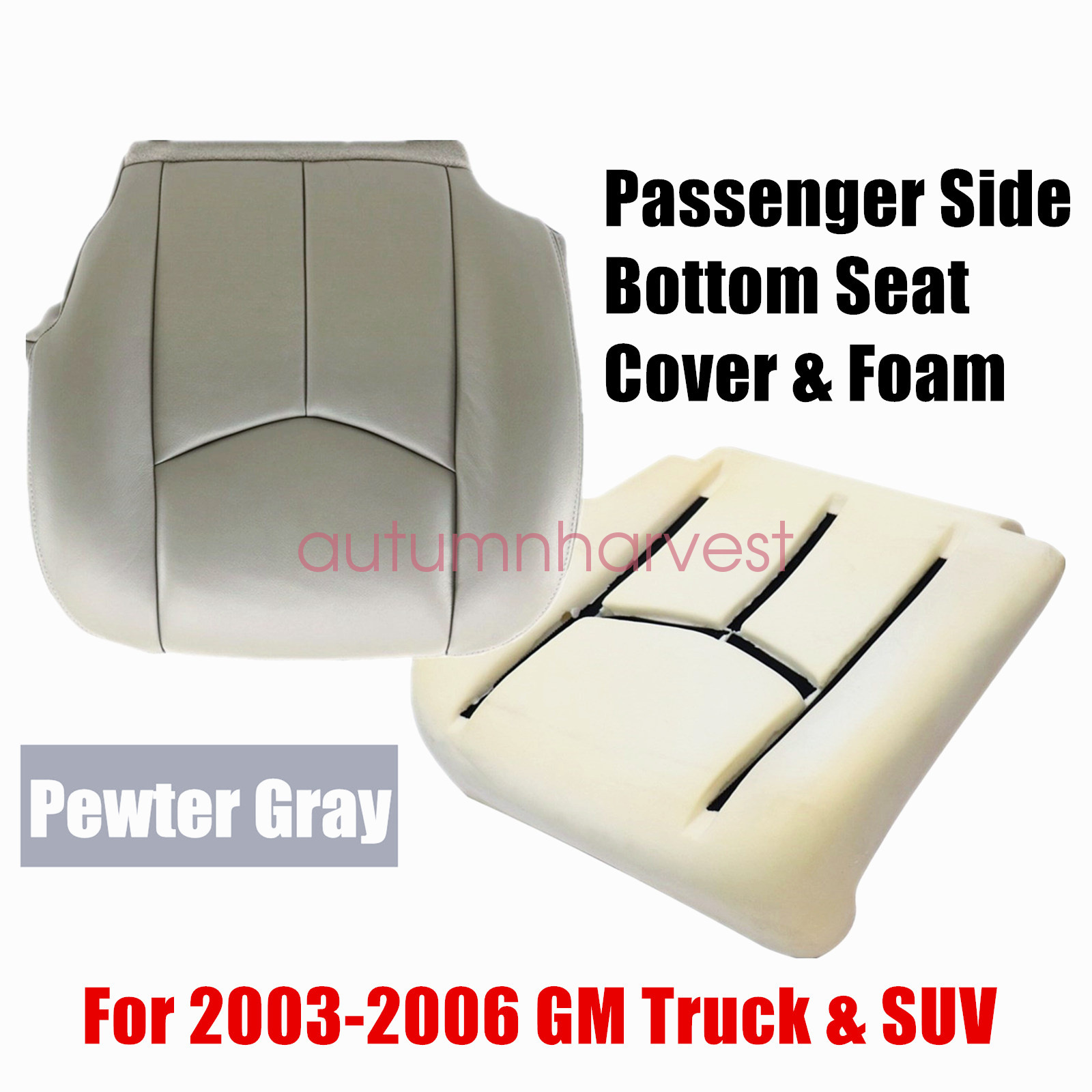 Name: Passenger Bottom Seat Cover & Foam Cushion Fits 2003-2006 Silverado, Sierra, Tahoe, Suburban, Avalanche, Yukon , Escalade Manual & Powered Seats