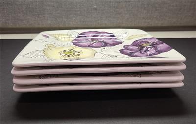 Up for sale is a set of 4 earthenware square salad/dessert plates in the Lily pattern by Pier 1 Imports. Each plate measures 8.5"x 8.5". Pieces are in excellent condition with no chips, cracks, crazing or scratches. Please check out our other listings for additional pieces from this collection.Thanks for looking!!