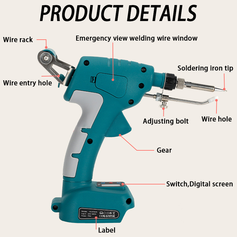 Cordless Soldering Gun Fast Welding Tools Cordless Soldering Iron Gun for Makita for Dewalt for Milwaukee for Bosch 18V 20V Li-ion Battery Feature: