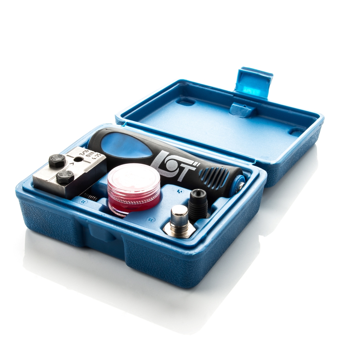 • 1x Bördelgerät-Satz (1x Handgriff, 1x Grundkörper, 1x Bördeldorn, 1x Bolzen, 1x Spezialfett)
