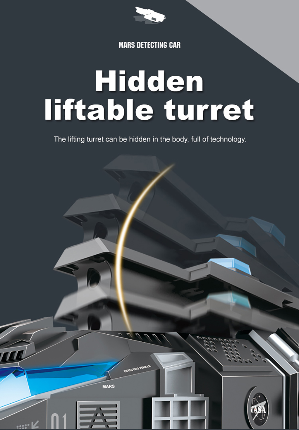 2. Hidden liftable turret: The lifting turret can be hidden in the body, full of technology