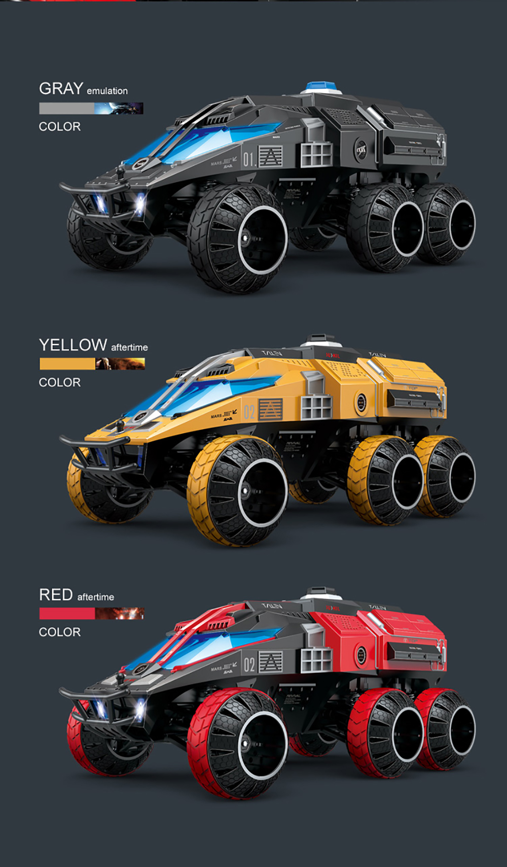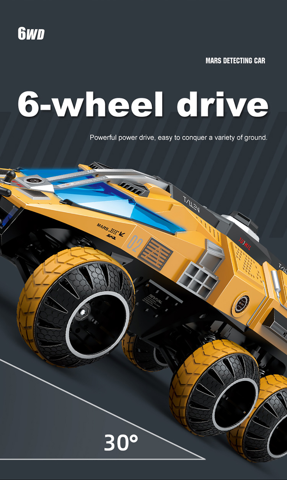 6. 6-wheel drive: Powerful power drive, easy to conquer a variety of ground