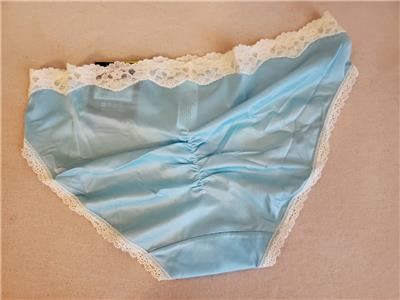 *LADIES INTIMATE APPAREL FROM MAIDENFORM* MAIDENFORM THE CHEEKIES Bikini PANTIES IN LITE BLUE WITH IVORY TRIM PRETTY SEWN ON STRETCH LACE WITH SCALLOPED EDGE WAISTBAND ONE BOW IN FRONT SEWN ON STRETCH LACE TRIM AT LEG OPENINGS