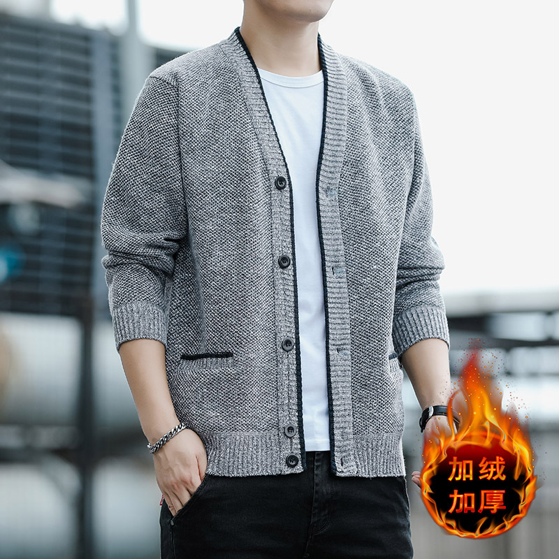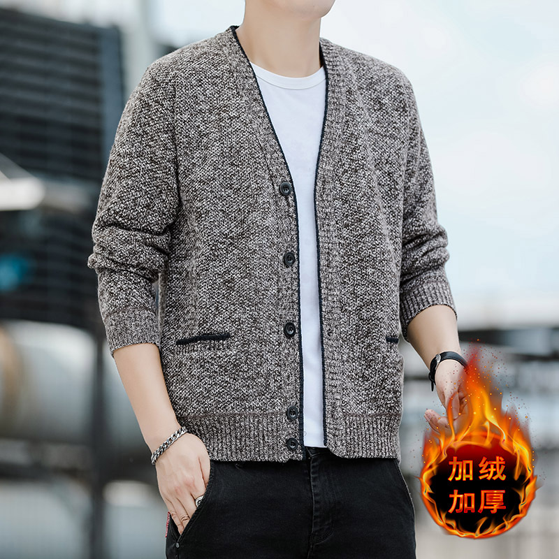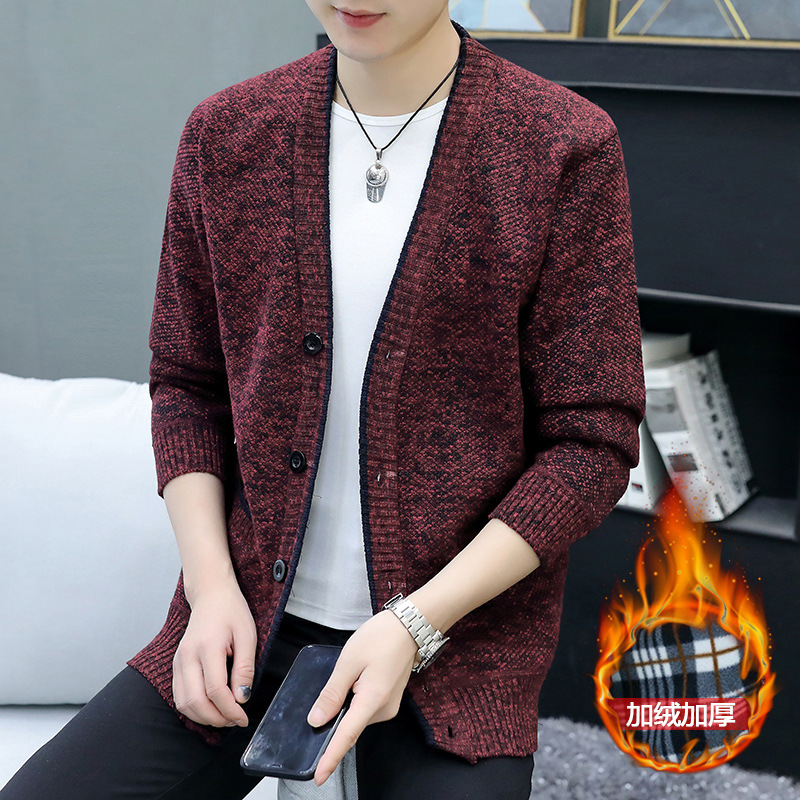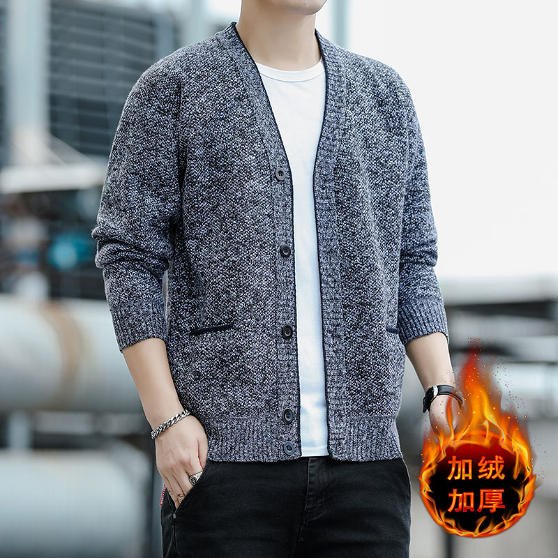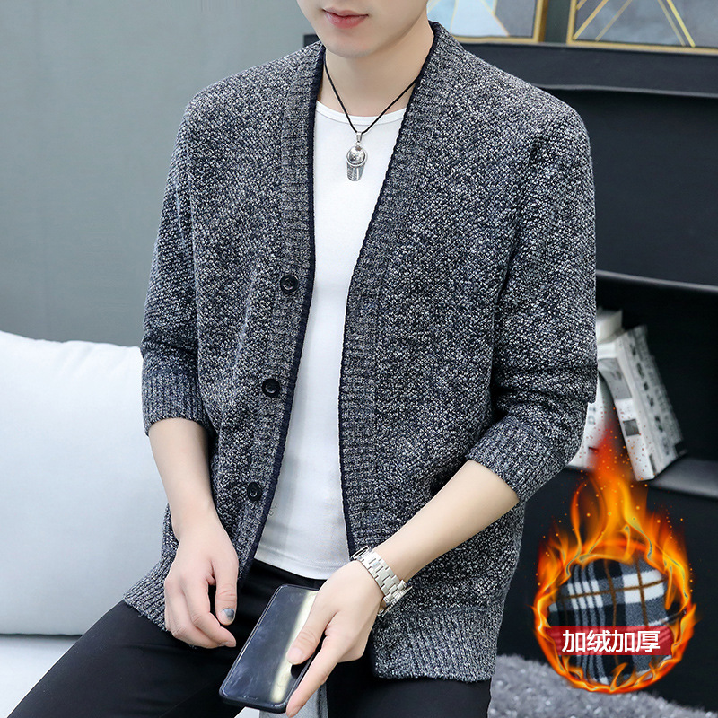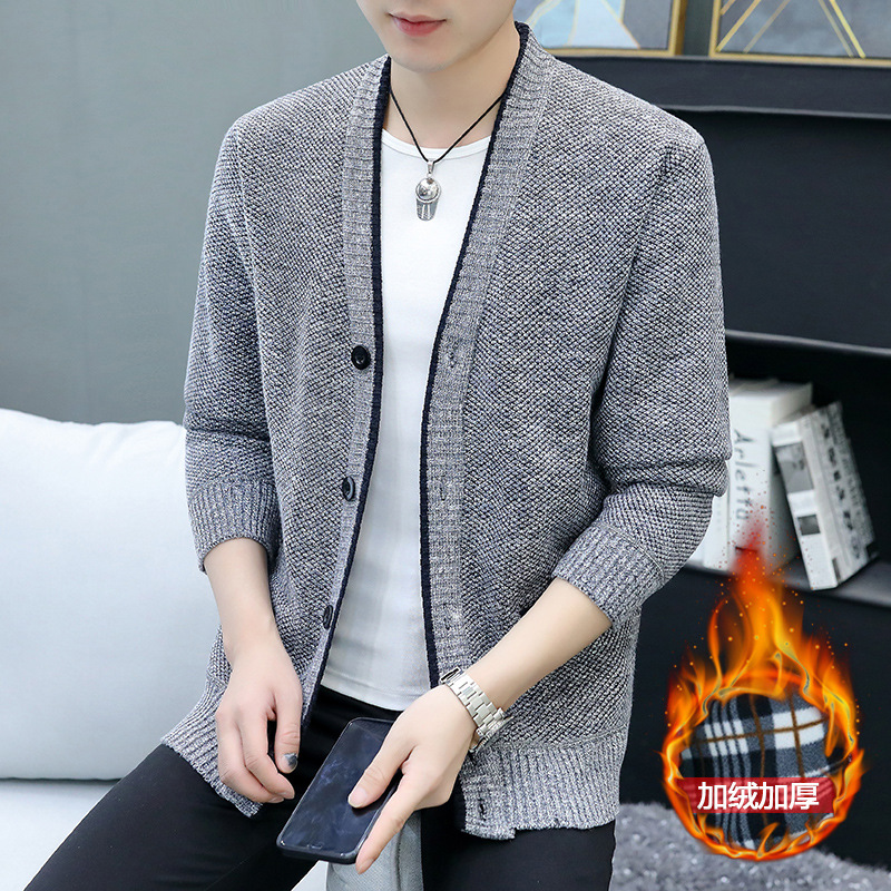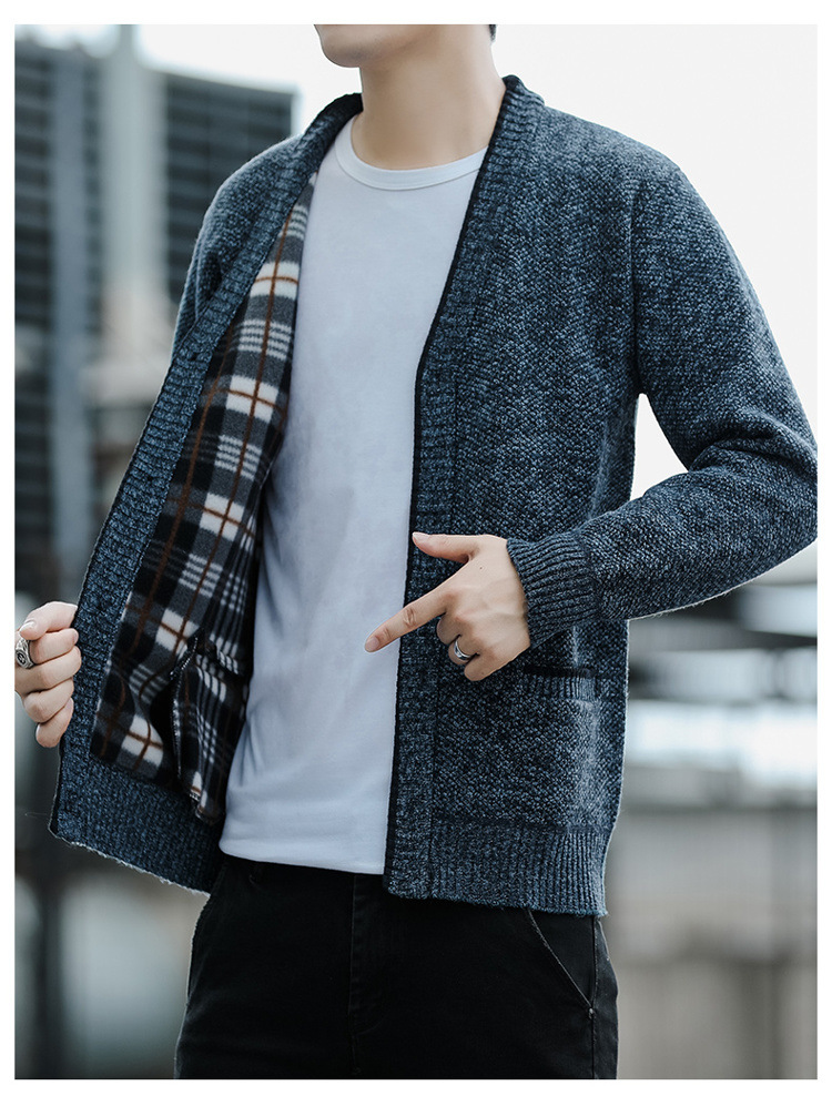 Winter Knitted Cardigan Mens Korean Outer Sweater Plus Velvet Casual Jacket Warm