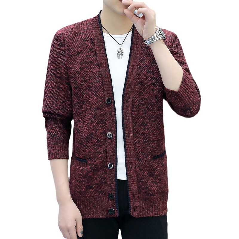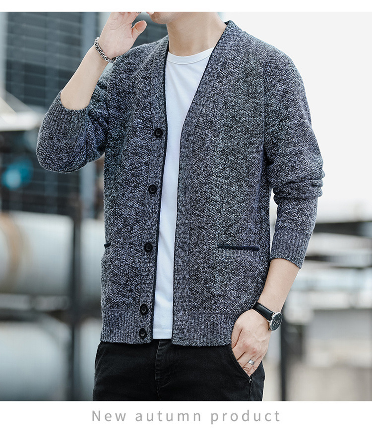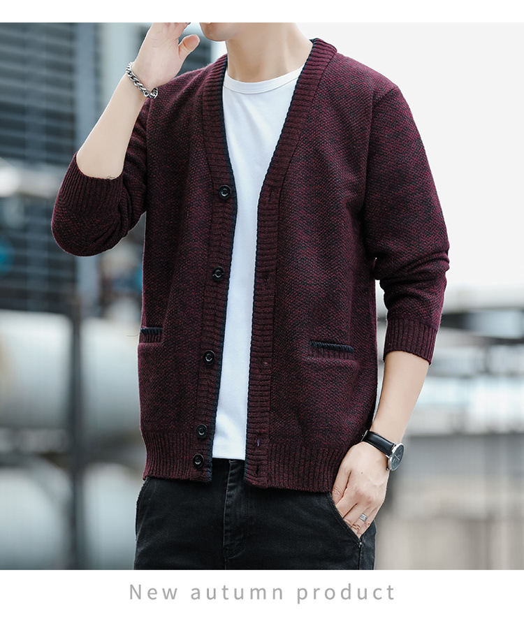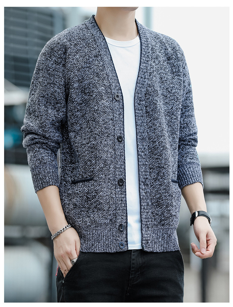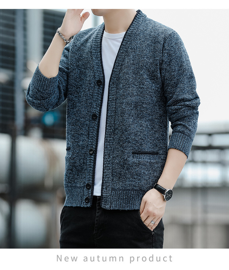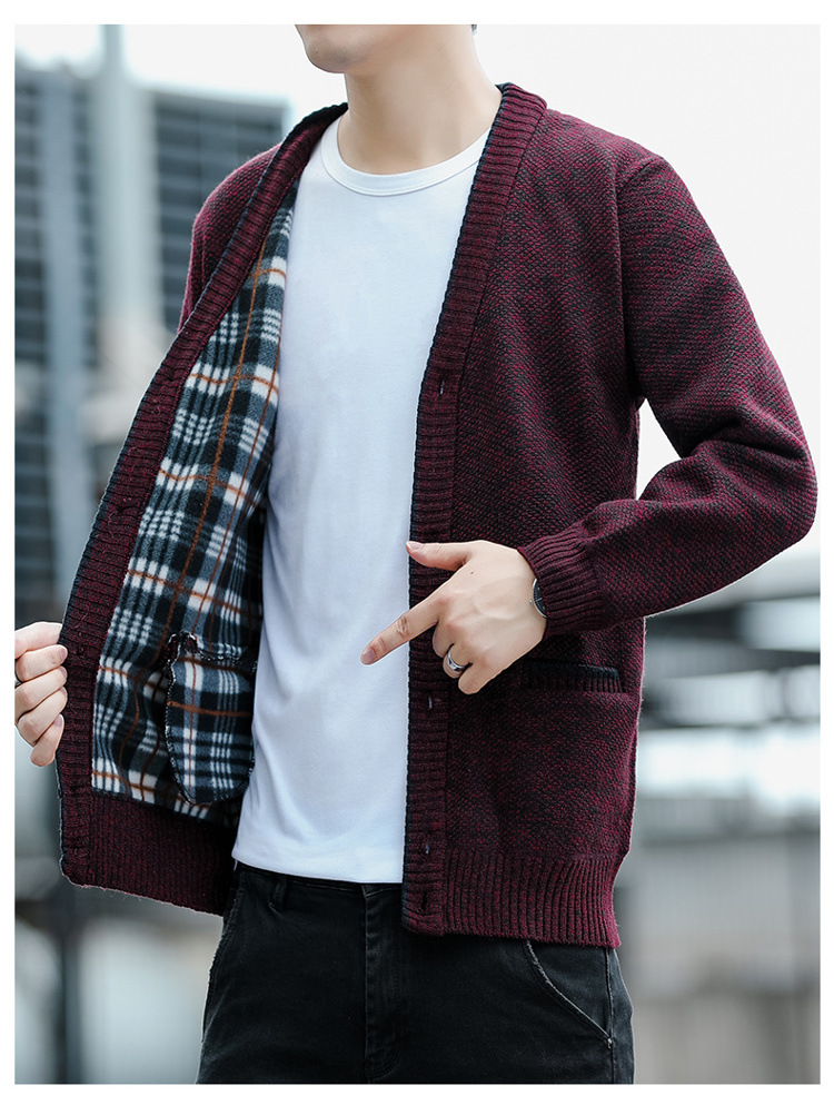 Winter Knitted Cardigan Mens Korean Outer Sweater Plus Velvet Casual Jacket Warm