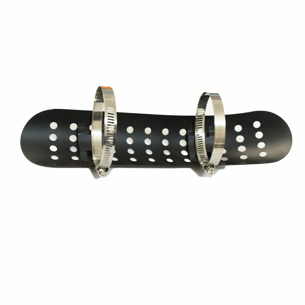Description: These heat shields are designed to reduce heat radiated from exhaust pipe. The heat shields are available in a variety of sizes to fit your needs. High quality heat shields look great and keep you cool! Specifications: Condition: 100% Brand New Qty: 1x Set Material: Steel Color: Black Shield Length: Aprx 10.6" Clamp Diameter: Flex 46-70mm / 1.8-2.75 Inch Curved Disigned Stainless Steel Construction Heat Shield With The Flexible Clamps To Fit Most Pipes Shields Are Chrome Plated And Highly Polished For Great Look For Years Come Complete With Clamps For Mounting Easy To Install Fitment: Universal fits most major brand Custom Bikes/for Choppers/for Cruisers use with 46mm-70mm (1.8"-2.75")diameter exhaust pipes. Package Included:
