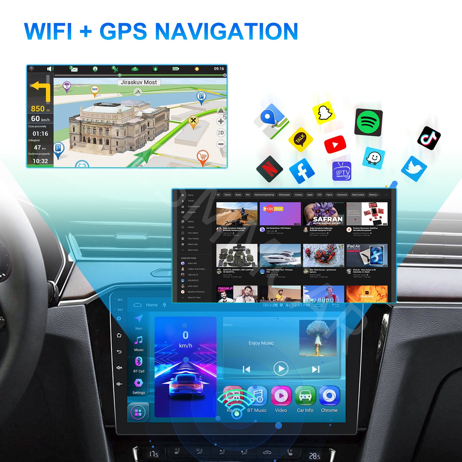 Built-in WIFI: Connect to WIFI, and you will find a new world,the most convenient one is the online map.