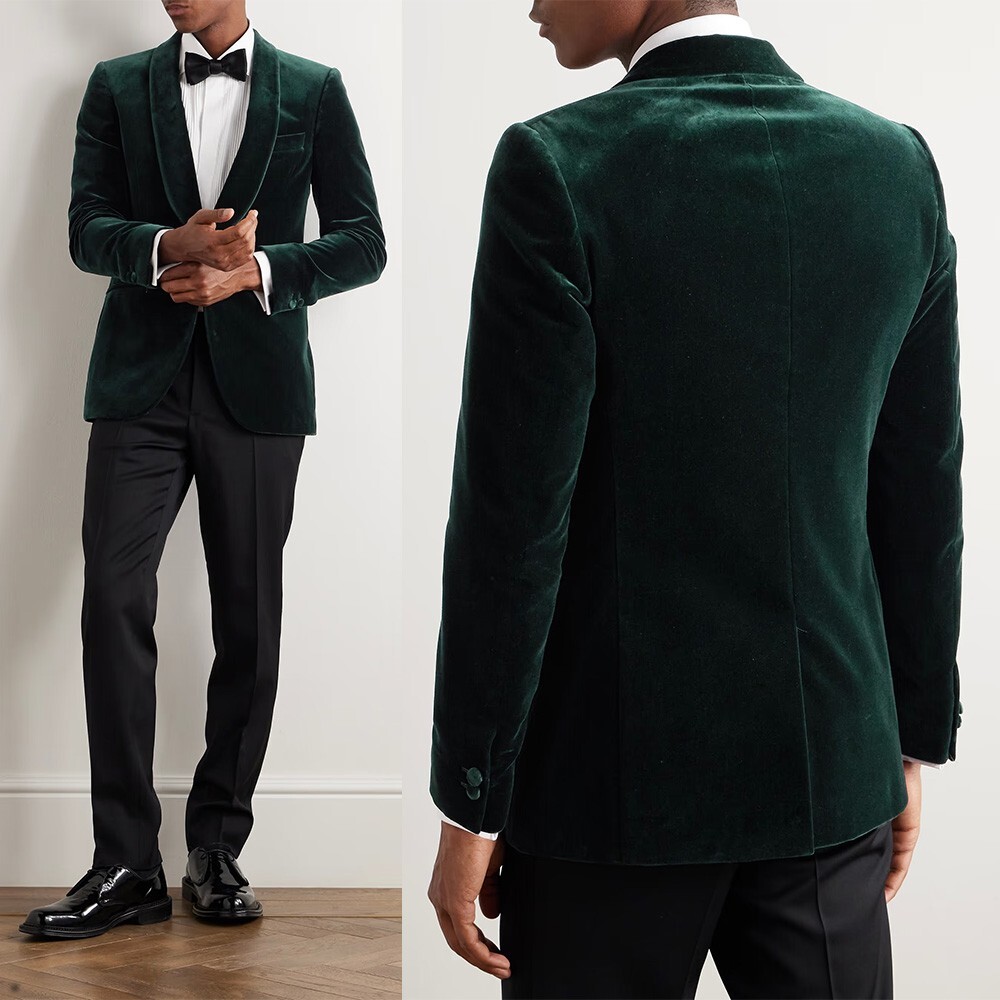 Velvet Men Suit Shawl Lapel Slim Fit Single Breasted Groom Party Tuxedos Jackets