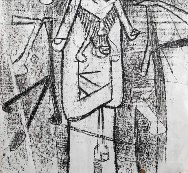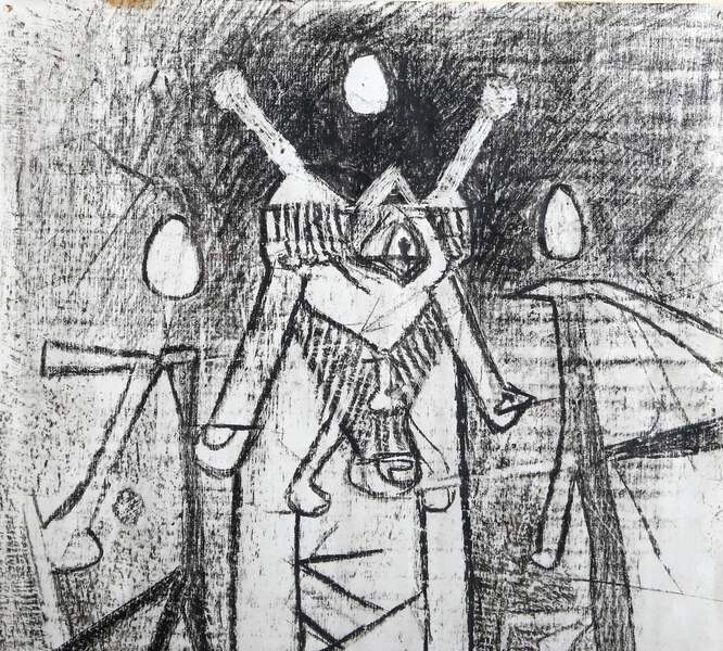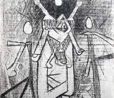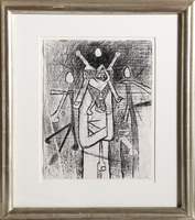 Roberto Matta, Chilean (1911 - 2002) - Surrealist Figure in Space-scape. Year: 1956, Medium: Wax Crayon on paper, Size: 13 x 10 in. (33.02 x 25.4 cm), Frame Size: 20.5 x 18 inches, Description: From the collection of the late Larry Saphire