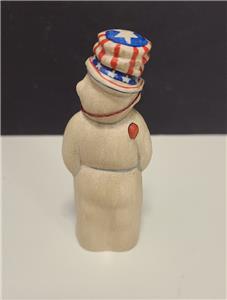 For sale is a Vaillancourt Folkart Chalkware Uncle Sam Snowman. Marked #57 2002-48 and signed on the bottom. Piece is in excellent condition with no chips, cracks, crazing or scratches. Measures 4" tall. Thanks for looking!!