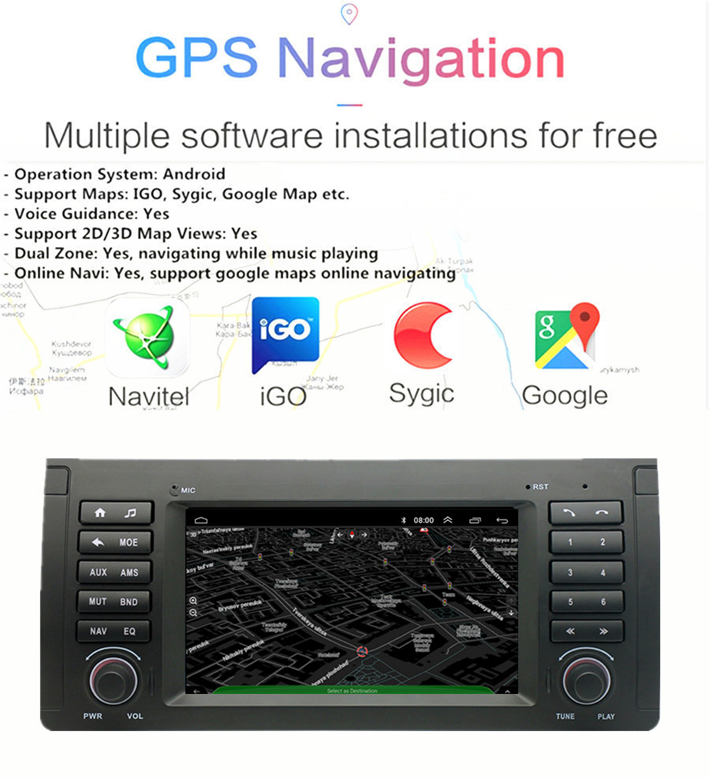 - Operation System: Android 13 - Support Maps: IGO, Sygic, Google Map etc. - Voice Guidance: Yes - Support 2D/3D Map Views: Yes - Dual Zone: Yes, navigating while music playing - Online Navi: Yes, support google maps online navigating |
