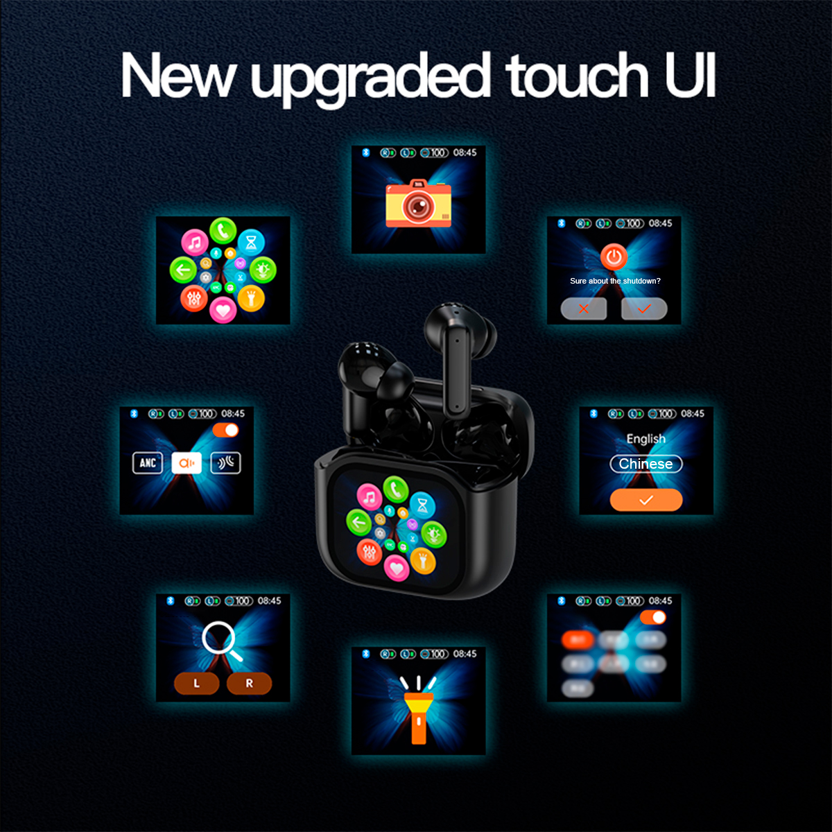 8, large size LCD full-colour touch display, you can switch songs on the screen, adjust the music volume, answer and reject calls, but also Bluetooth photo;