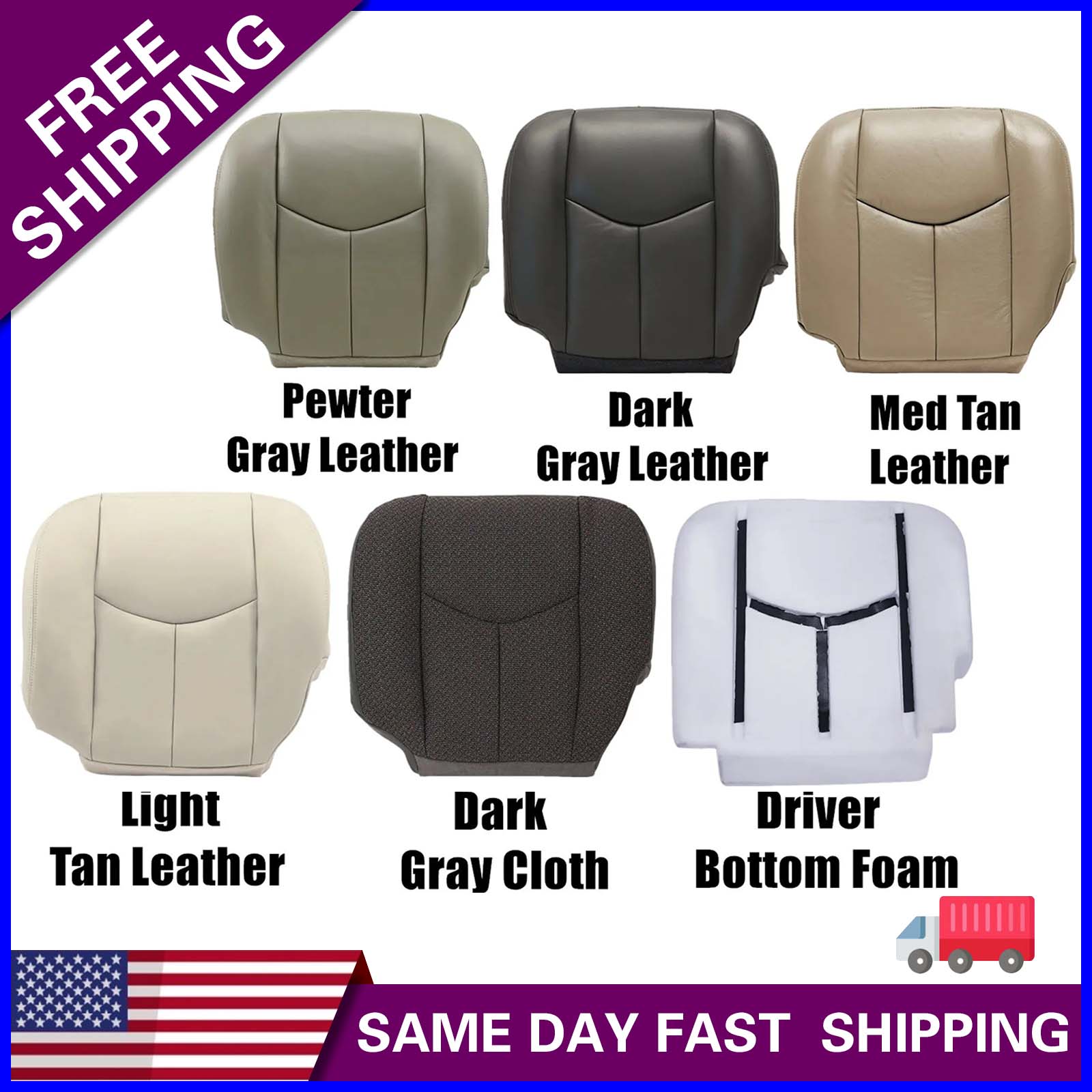 For 2003 2004 2005 2006 Chevy/GMC Tahoe, Suburban, Silverado, Avalanche, Sierra Replacement Front Seat Cover